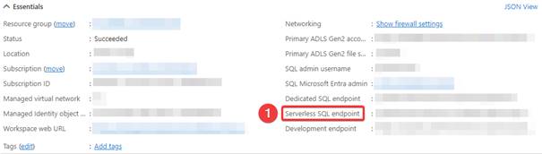 - Etape 1 – Serveur : Utilisez le point de terminaison SQL serverless de votre espace de travail Synapse