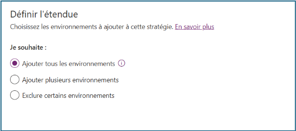 - Choisir le périmètre de votre stratégie avec les environnements ciblés et exclus.