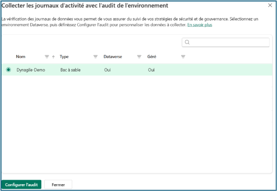- Sélectionner l’environnement souhaité puis cliquer sur « Configurer l’audit ».