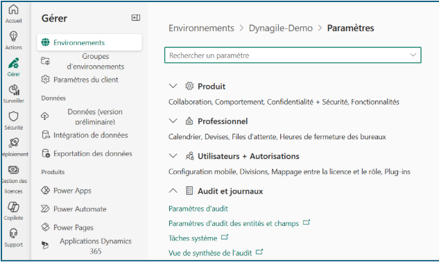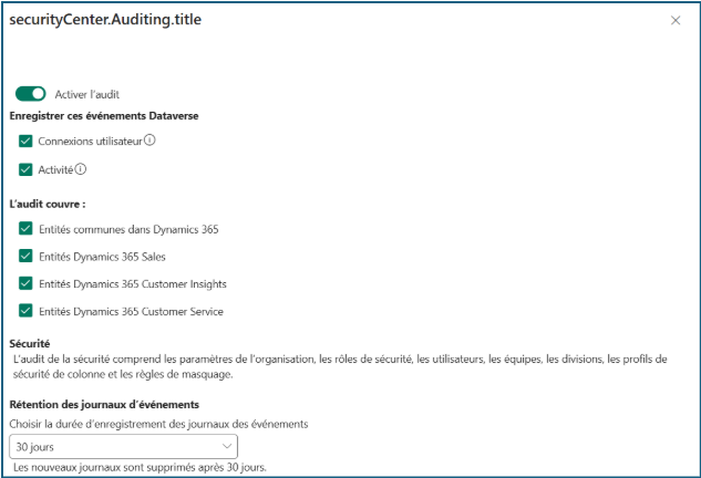 Ce paramètre permet de définir le périmètre de l’audit d’un environnement ainsi que la durée de rétention des journaux d’audit.