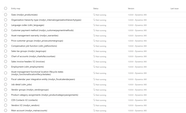 Like below you will see all the entities mapping you have from Microsoft solutions packages you had imported before in your CDS. Of course this is the standard one, and you can customize it on your own. Change the standard one, create new one (thing of : custom entities from FinOps & CRM you want maybe to sync in the CDS)