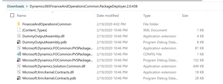 · Extract the package zip file and copy all the below files from the folder Dynamics365FinanceAndOperationsCommon.PackageDeployer.2.0.438.