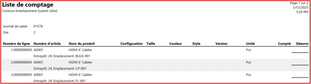 · La feuille de comptage est retournée au gestionnaire, qui saisit les quantités dans D365.