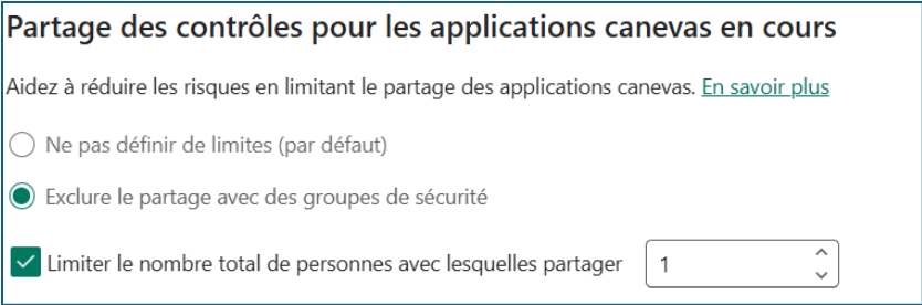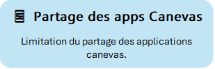 Cette fonctionnalité permet de réduire le risque d’accès non autorisé aux applications canevas. Il est recommandé de bloquer et de restreindre le partage à un nombre défini d’utilisateurs.