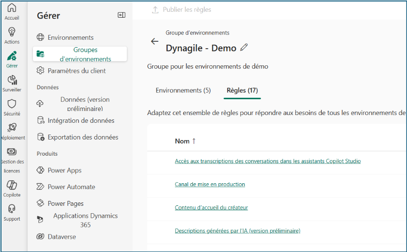 Microsoft Power Platform propose une organisation des environnements par groupe, ce qui simplifie leur gestion et permet de déployer rapidement des mesures de sécurité.