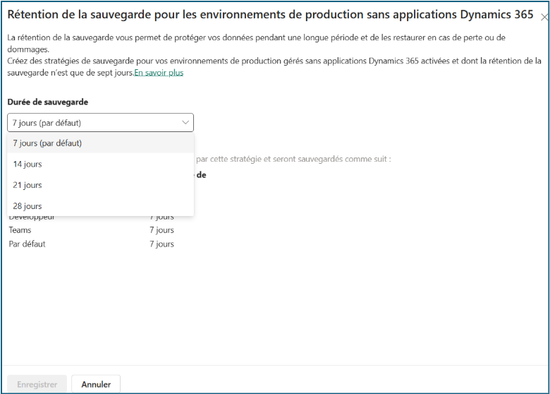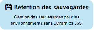 Cette fonctionnalité permet de définir une politique de sauvegarde adaptée aux environnements sans applications Dynamics 365, afin de garantir la disponibilité des infrastructures et des données.