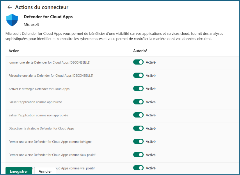 En complément, il est possible d’affiner les autorisations en contrôlant les actions spécifiques associées à chaque connecteur. Par exemple, vous pouvez autoriser uniquement les opérations de lecture, tout en bloquant les actions d’écriture ou de suppression.