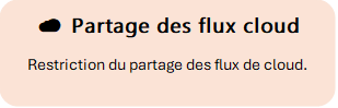 Cette fonctionnalité permet de réduire le risque d’accès non autorisé aux flux de cloud. Il est recommandé de bloquer le partage des flux pour garantir une sécurité optimale.