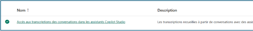 1. Sélectionner la règle « Accès aux transcriptions des conversations dans les assistants Copilot Studio »
